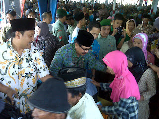 Pembagian 5000 paket sembako yang berisi 5 kg beras jenis premium, 2 kg gula pasir, 1 L minyak goreng, kecap, serta 5 bungkus mi instan kepada masyarakat miskin Gresik ini disaksikan oleh Bupati Gresik dan segenap muspida Gresik.