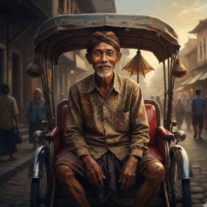 “Isin mas, aku mung tukang becak, ora akeh wong sing ngregani tukang becak kaya aku iki. Mulane, yen ngepasi ana penumpang kanca lawas lan dheweke ora apal karo aku, aku biyasa ya ora blaka menawa aku kancane.”, mengkono dheweke guneman marang aku.