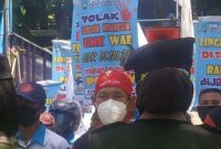 Ratusan massa buruh yang tergabung dalam Federasi Serikat Pekerja Logam Elektronik dan Mesin Serikat Pekerja Seluruh Indonesia (FSP LEM SPSI), Serikat Pekerja Nasional (SPN) …