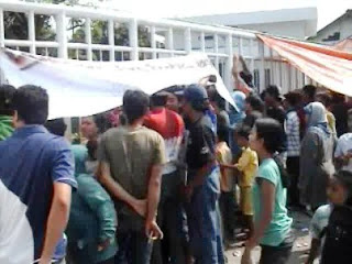 Puluhan warga Desa Lebaniwaras, Kecamatan Wringinanom, Kabupaten Gresik memblokir jalan ke lokasi pabrik Platinum Ceramics Industries, Selasa (5/07/2011). Aksi ini dilakukan warga karena tuntutan warga tidak dipenuhi perusahaan.