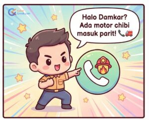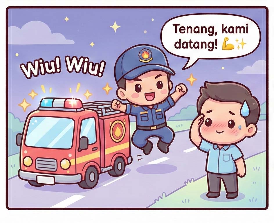 Petugas Damkar kembali ke Markas dan melanjutkan rutinitas (mendengarkan radio komunikasi). (KabargresikKomik)