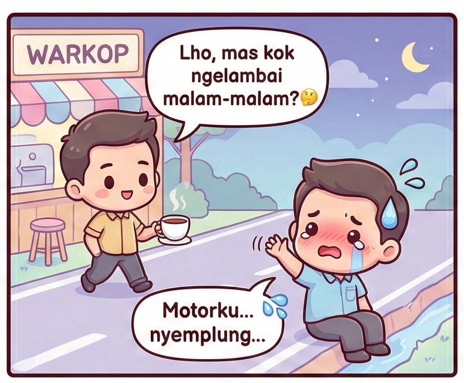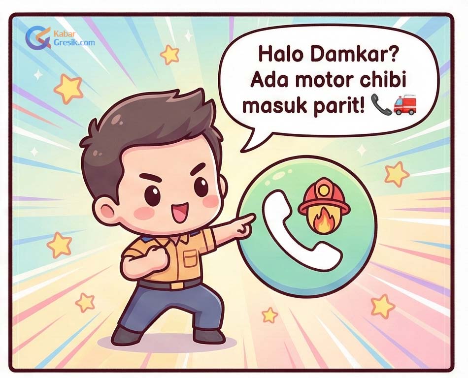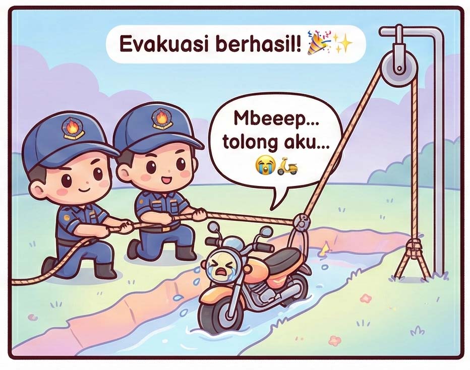 Damkar Gresik Evakuasi Motor Masuk Parit (Komik)