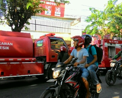 Kabargresik_ Sejumlah karyawan Dealer Honda SPS motor dijalan Jaksa Agung Suprapto dikagetkan dengan adanya kobaran api. Mendapat kabar seperti itu mereka pada memilih keluar untuk menyelamatkan diri. Selasa (3/11/2015)