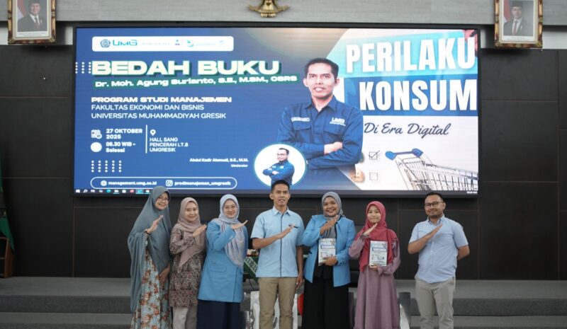 GIRIMU.COM — Program Studi (Prodi) Manajemen, Fakultas Ekonomi Bisnis Universitas Muhammadiyah Gresik (FEB UMG) menggelar bedah buku Perilaku Konsumen di Era Digital karya Dr Moh. Agung Surianto, SE, MSM, CSRS. Bedah buku karya dosen Manajemen FEB UMG itu berlangsung di hall Sang Pencerah UMG, Senin (27/10/2025).