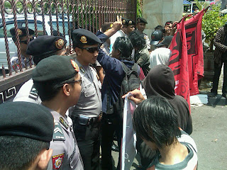 Sejumlah aktifis yang tergabung dalam Forum Kota (FORKOT) melakukan aksi unjukrasa di depan kantor DPRD Gresik (16/1).
