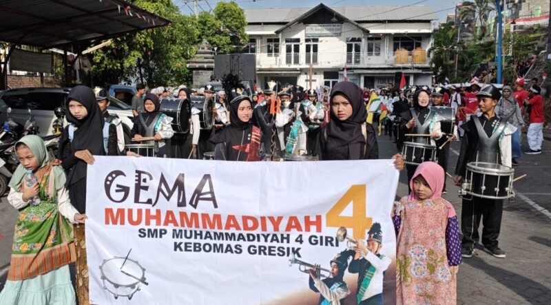 GIRIMU.COM — Marching Band Gema Spemupat dari SMP Muhammadiyah 4 Kebomas, Gresik ikut memeriahkan Karnaval dan Pesta Rakyat Desa Giri , Kecamatan Kebomas dalam rangka memperingati HUT ke-80 Kemerdekaan RI, Minggu (7/9/2025).
