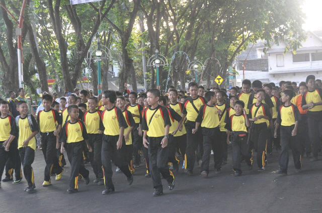 Ribuan pelajar memadati alon – alon Gresik, mereka ramai-ramai mengikuti jalan sehat dalam rangka memperingati Hari Olah Raga Nasional (Haotrnas XXIX).