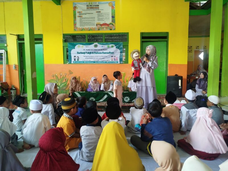 GIRIMU.COM — Suara riuh tepuk tangan berasal dari barisan anak yang duduk berjajar di halaman PAUD Aisyiyah Melirang, Kecamatan Bungah, Gresik. Mereka menyambut dengan meriah saat Heny Rahmawati sebagai pemandu acara Bakti Sosial dan Santunan memersilakan kak Rita dan Martin (boneka berbaju merah) untuk menghibur anak-anak hebat yang hadir pada acara tersebut, Rabu (11/3/2026).