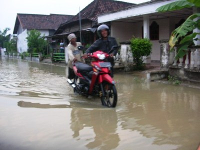 Kabargresik-Benjeng– Luapan Kali Lamong Selasa (2/11/10) menggenangi tiga desa di kecamatan Benjeng Gresik, tiga desa yang terendam banjir di antaranya, desa Delik Sumber, Bulang kulon, dan Sedapur klagen. ketinggian air di tiga desa tersebut hingga sore hari rata – rata masih 30 centi meter.