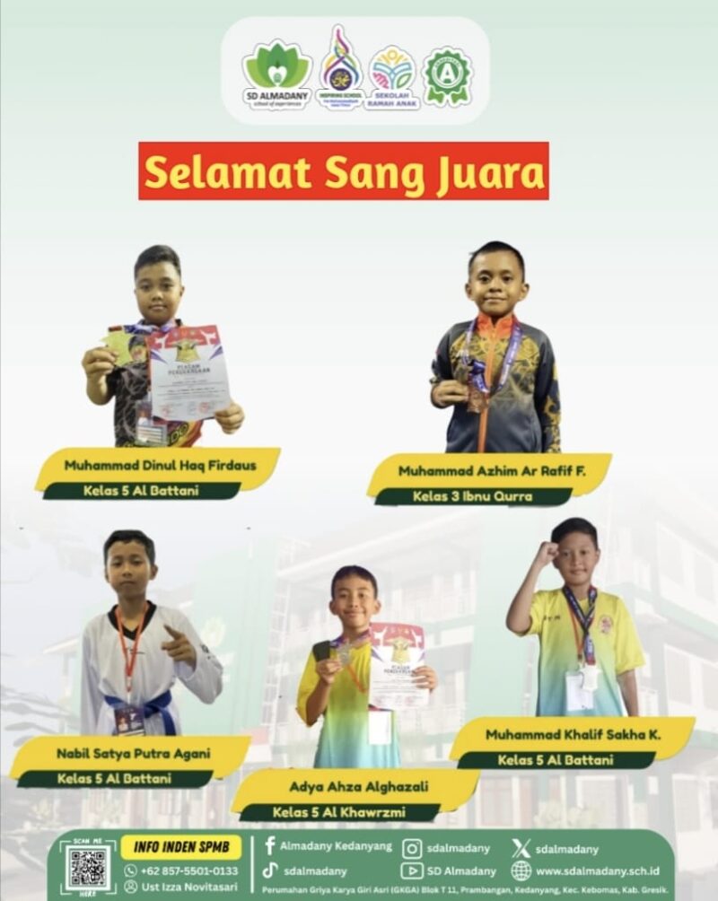 Keberhasilan kelima atlet berprestasi SD Almadany itu tidak hanya membawa kebanggaan untuk dirinya, tetapi juga untuk sekolah dan komunitasnya, Gresik Taekwondo Academy.