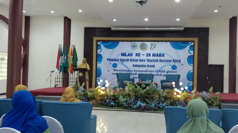 GIRIMU.COM — Penguatan eksistensi dan motivasi bagi guru-guru Aisyiyah Bustanul Athfal (ABA) disampaikan di forum Milad ke-28 Ikatan Guru Aisyiyah Bustanul Athfal (IGABA) yang berlangsung di Gedung Dakwah Muhammadiyah (GDM) Gresik, Sabtu (6/12/2025). Ketua Majelis PAUD Dasmen Pimpinan Daerah Aisyiyah (PDA) Gresik, Musrifah, SAg, hadir membakar semangat para guru pada jenjang KB-TK.