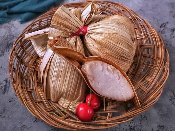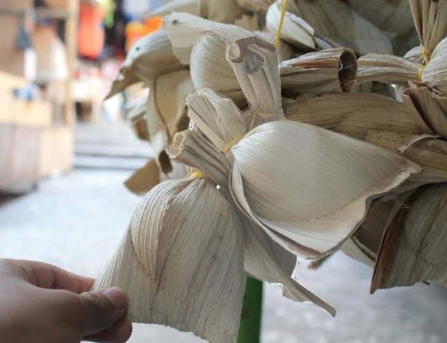 Setelah dibersihkan dan dipotong-potong sesuai ukuran, kemudian dilipat dan dijahit dengan alur seperti huruf L tanpa sudut, sehingga sisi dan dasarnya tertutup dan membentuk ruang seperti gelas. Setelah adonan dituangkan, ujung kemasan yang terbuka dikuncupkan dan diikat. Baru dikukus.