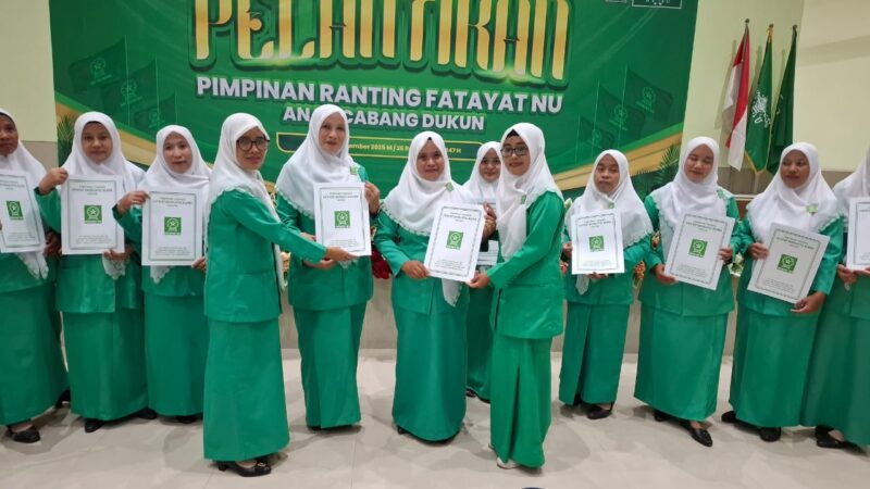 Sebanyak 33 Pimpinan Ranting Fatayat NU se-Ancab Dukun resmi dilantik di Aula KH Muhammad Hasyim Asy’ari Majelis Wakil Cabang NU Dukun, Jumat (19/9/2025).