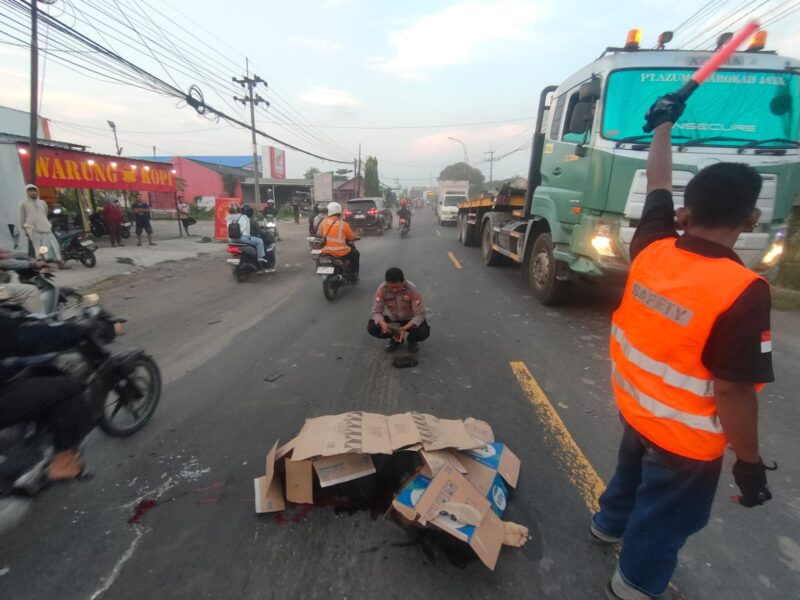 Akibat benturan itu, korban terjatuh ke sisi kiri jalan dan terlindas truk yang sebelumnya didahuluinya. Truk tersebut langsung melarikan diri meninggalkan lokasi. “Akibat peristiwa tragis itu, korban meninggal dunia di tempat. Tidak ada korban luka berat maupun ringan lainnya dalam kecelakaan tersebut,” jelasnya.