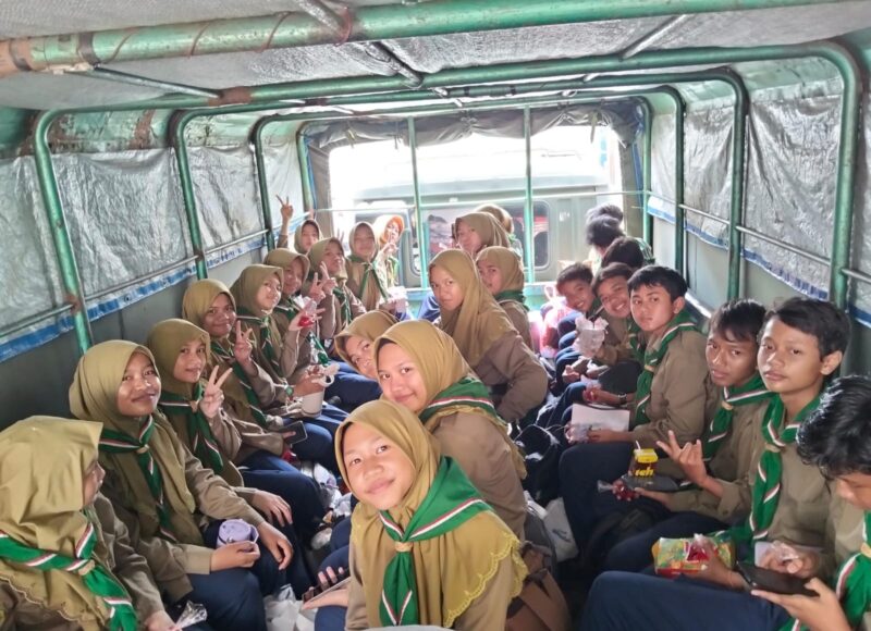 Perjalanan menuju Pacet yang berlangsung selama kurang lebih dua jam menjadi momen pembentukan mental dan kebersamaan awal bagi para peserta. Dengan dibersamai oleh 10 guru pendamping, mereka terlihat antusias sekaligus tegang saat menaiki bak truk berwarna hijau khas militer tersebut.