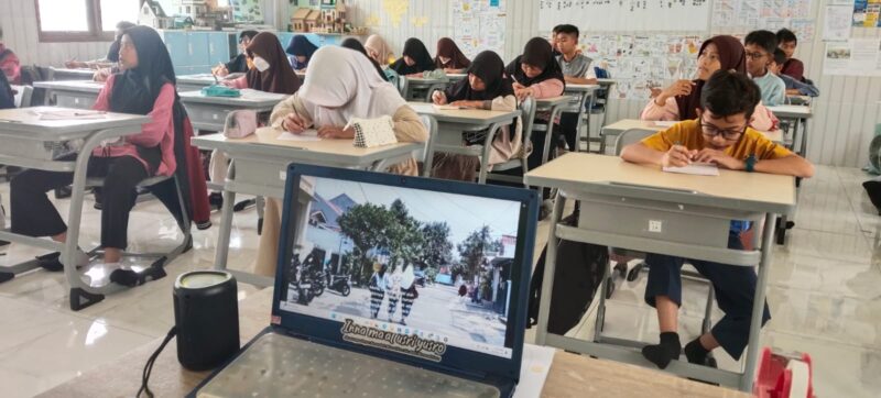 Pada Senin (2/3/2026) ini asesmen praktik siswa kelas VI diuji dengan menyimak, menulis, dan menceritakan kembali serta membaca puisi dalam mata pelajaran Bahasa Indonesia. Dalam asesmen praktik Bahasa Indonesia ini siswa diajak mendengarkan menyimak cerita tentang pamer yang berujung petaka. Siswa antusias mencatat setiap scene yang mereka lihat, maupun kata yang didengar. Tak ada satupun yang bermain maupun bercakap sendiri.
