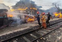Kebakaran hebat melanda bangunan milik Asmadi yang dikontrakkan kepada pihak Indomarco dan PT Silikon di Desa Bambe, Kecamatan Driyorejo, Kabupaten Gresik, Minggu (5/10/2025) sekitar…