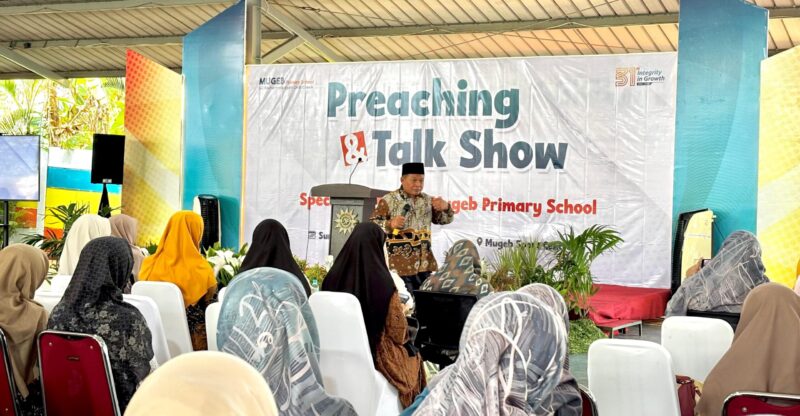 Kekhidmatan acara semakin terasa saat Fajar Arifian, tenaga kependidikan Mugeb Primary School, melantunkan ayat suci Al-Quran. Jalannya seluruh rangkaian kegiatan ini dikawal dengan apik oleh duet pembawa acara: Raden Panji Hartono dan Nur Fadhillah, yang merupakan guru aktif di sekolah tersebut.