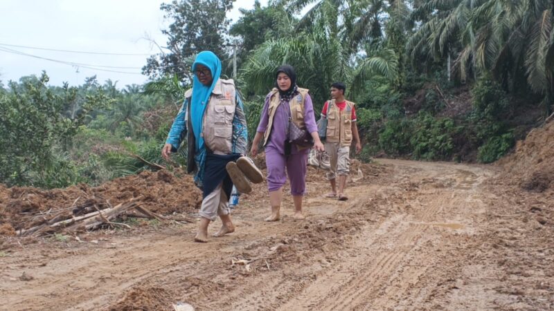Kondisi ini dialami tim kesehatan Muhammadiyah dari RS Muhammadiyah Lamongan, RSU Muhammadiyah Sumut, bersama relawan MDMC Kabupaten Langkat saat menuju Kelurahan Harapan Jaya, Kecamatan Sei Pan, Sabtu (13/12/2025). Sebanyak 16 relawan diterjunkan untuk kegiatan bakti sosial kesehatan di wilayah tersebut.