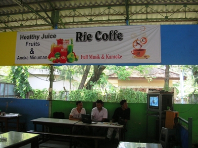 keistemawaan lainnya, kalao kita cangkruk di Rie Coffe ini, kita bisa pesan makanan apa saja yang ada di Pujasera, tinggal pesak pada Cak Rie, hidangan siap dikirim.Selain itu, yang hobi nyayi, di Rie Coffe juga menyediakan karaoke gratis.