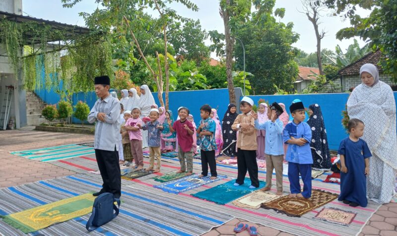 Sejak pukul 07.00, anak-anak telah hadir mengenakan busana muslim dan muslimah, membawa perlengkapan salat masing-masing, didampingi oleh ibu guru. Kegiatan praktik ini bertujuan mengenalkan tata cara pelaksanaan sallat Idulfitri kepada anak sejak usia dini. Melalui pembelajaran langsung, anak-anak tidak hanya mengetahui teori, tetapi juga mempraktikkan gerakan dan bacaan secara bersama-sama. Pembiasaan ini menjadi bagian dari pendidikan karakter dan penanaman nilai-nilai keislaman di lingkungan sekolah.