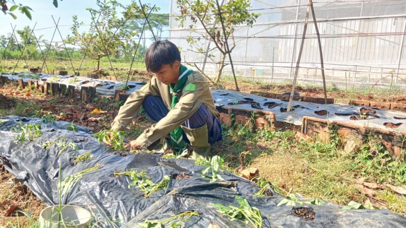 Dalam praktik tersebut, siswa tampak mengenakan seragam Hizbul Wathan (HW) sebagai identitas gerakan kepanduan Muhammadiyah. Dengan penuh semangat mereka menanam bibit ubi cilembu di bedengan yang sudah ditata dengan mulsa. Proses penanaman dilakukan secara terarah sesuai arahan guru pembimbing agar hasilnya maksimal.