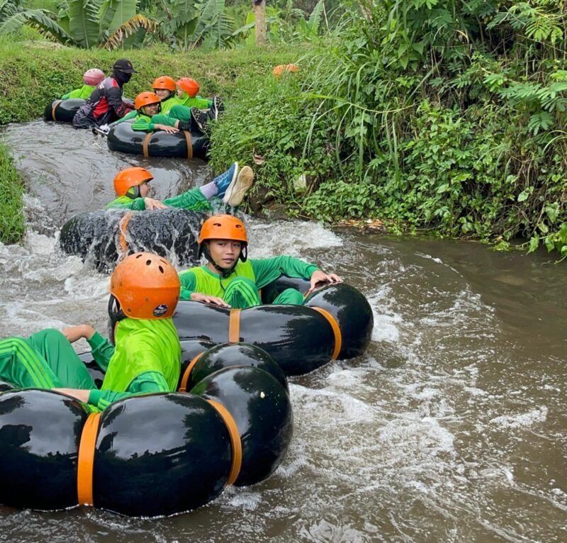 Siswa nampak antusias mengenakan seragam hijau bertuliskan ‘TechLifeSkill Berakhlakul Karimah’. Mereka mengikuti berbagai aktivitas seperti outbound, traditional games, dan river tubing yang dirancang untuk menumbuhkan karakter positif, keberanian, dan kerja sama antarteman.