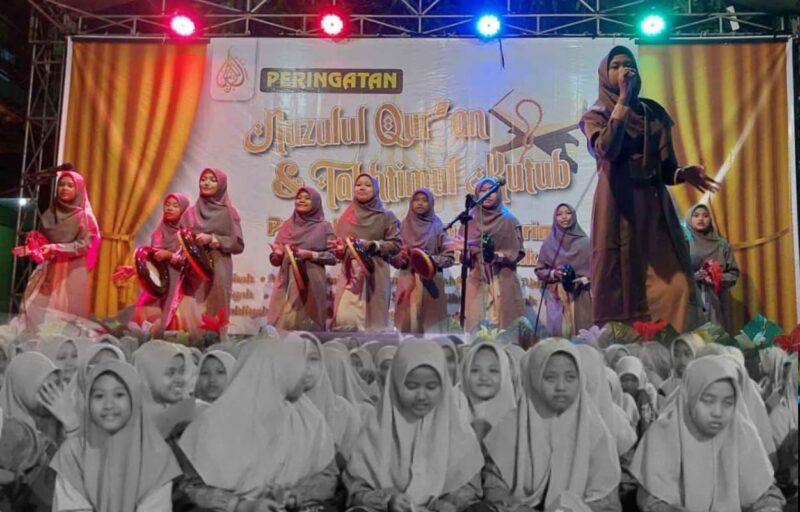 Acara Nuzulul Quran dan Tahtimul Kutub diadakan di Halaman Ponpes Alkarimi, Ahad (31/3/2024) disemarakkan dengan penampilan qosidah dari grup Hilwa Awi Ponpes Al Karimi.