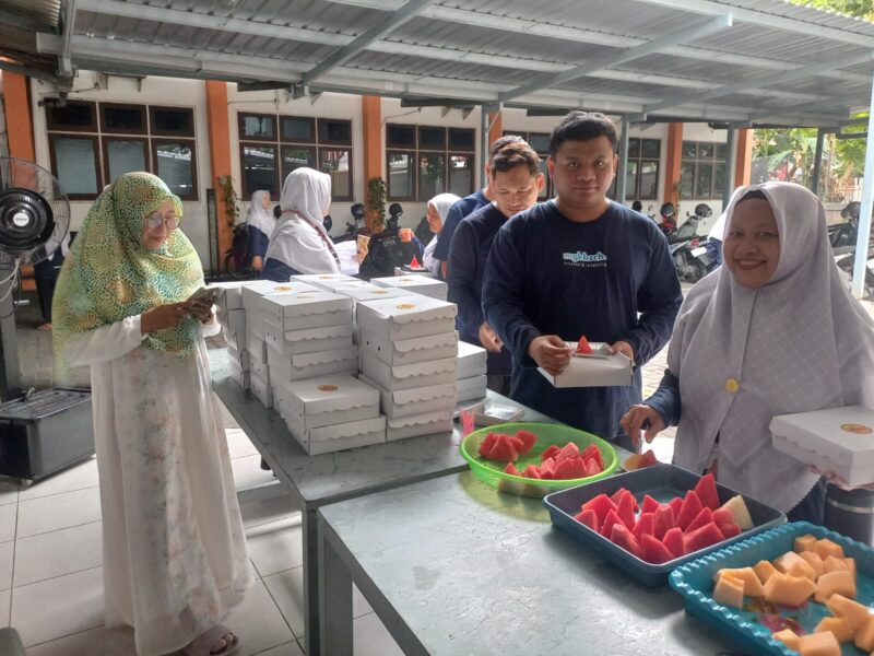 Nasi kotak dengan menu pecel spesial tertata rapi, berdampingan dengan potongan semangka dan melon di atas dua meja panjang yang berada di kantin Spemdalas. Penataan yang sederhana tersebut justru menghadirkan suasana akrab dan penuh kebersamaan. Dengan mengenakan kaos navy, para guru tertib mengantre untuk mengambil sarapan. Proses pembagian pecel dipandu langsung oleh Ustadzah Haifa Marta, SPd selaku Koordinator Nutrisi dan Kantin.