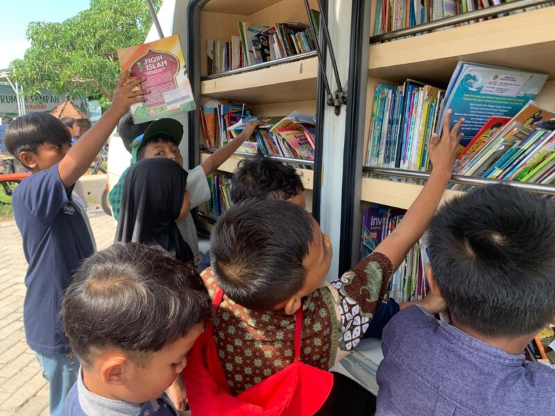 Wujud Kuatnya Berliterasi, Siswa SD Almadany Berebut Baca Buku di Mobil Pintar Perpusda